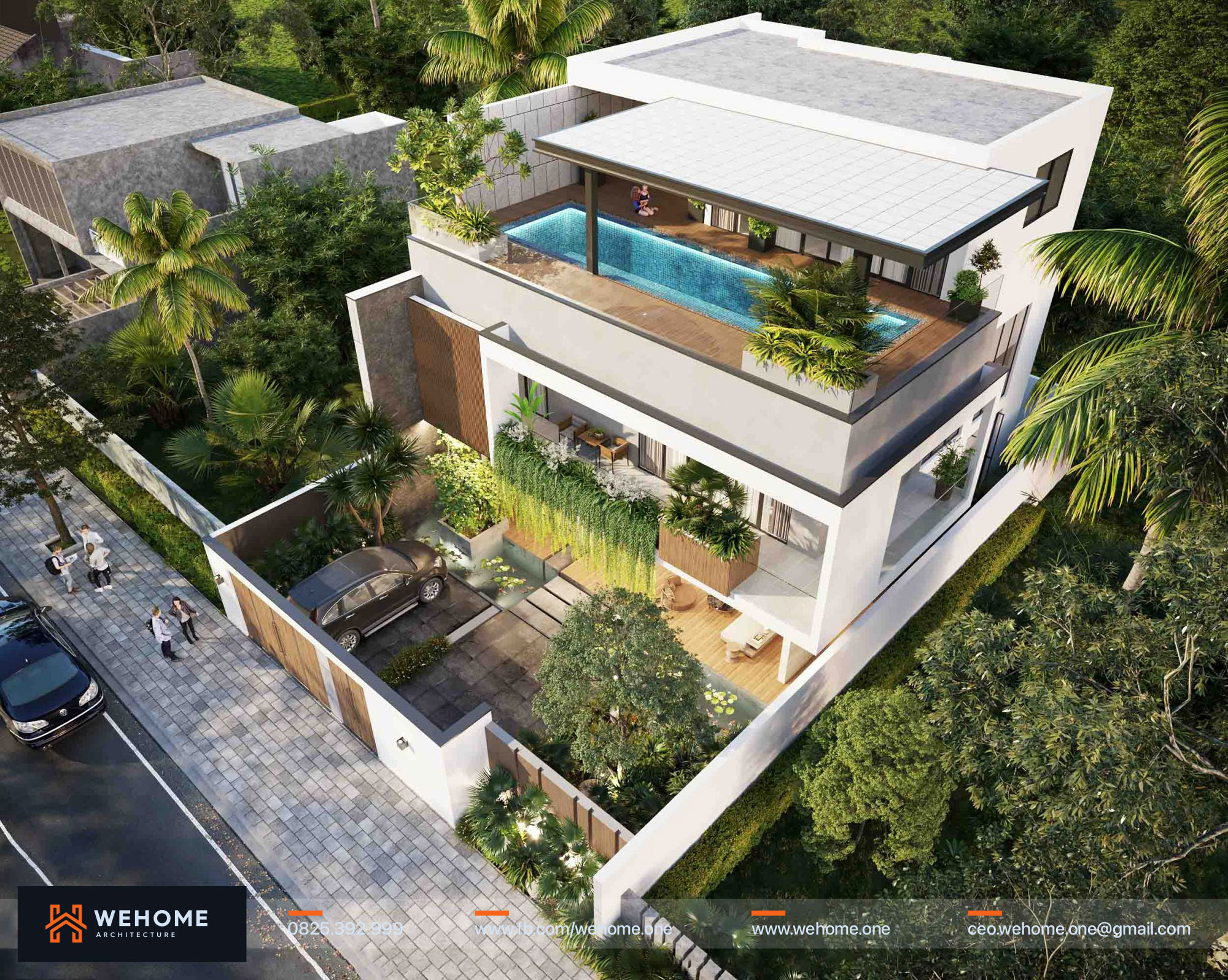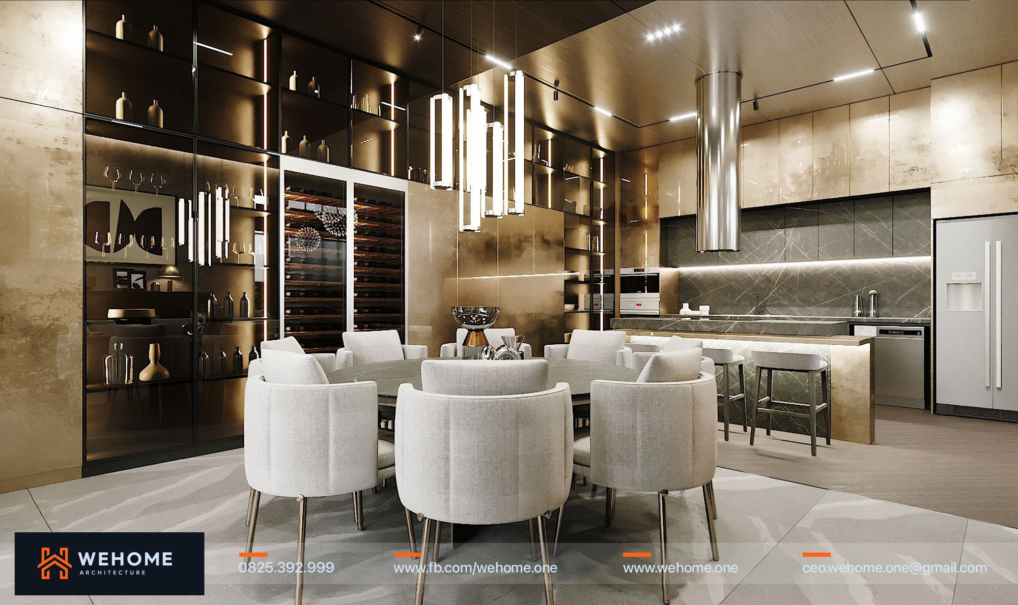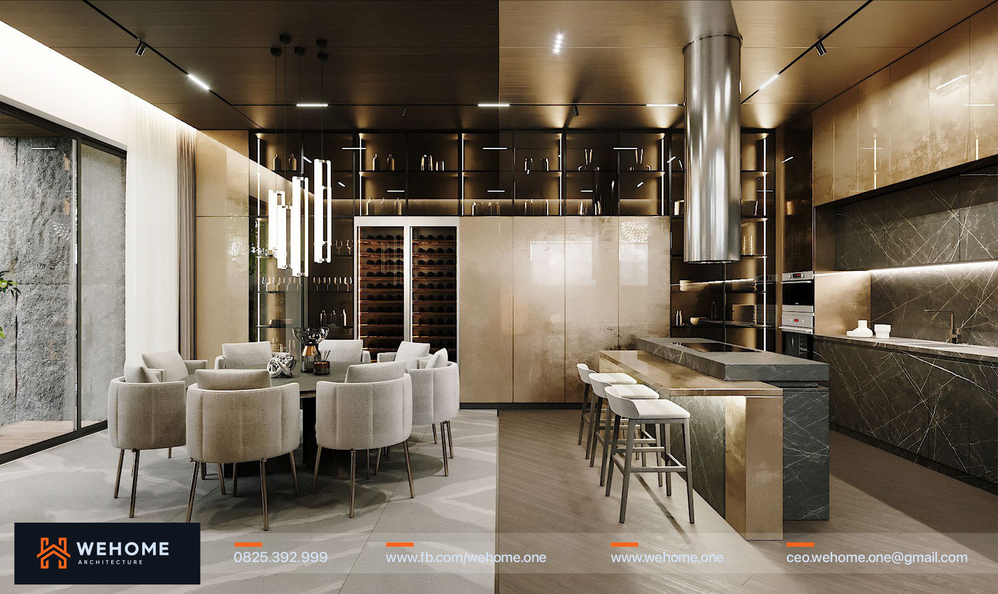 Từ khu vực bàn ăn chúng ta có thể kết nối với không gian xanh và hồ cá trong sân của biệt thự. Điều này càng minh chứng cho thấy các thiết kế của Wehome luôn hướng đến các không gian mở, giúp con người sống một cuộc sống xanh.
