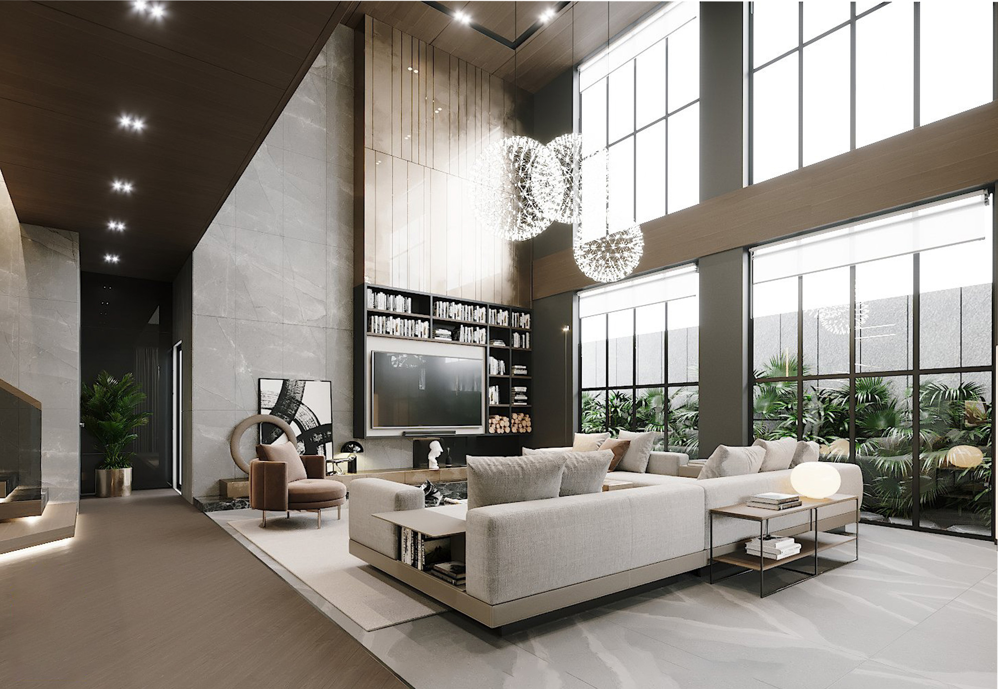 Nội thất bên trong phòng khách được thừa hưởng những nét đẹp nhất từ phong cách hiện đại chuẩn Châu Âu. Những tiểu tiết được trao chút tỉ mĩ không hề có những chi tiết thừa, mỗi chi tiết đều góp phần giúp phòng khách sang trọng hơn.