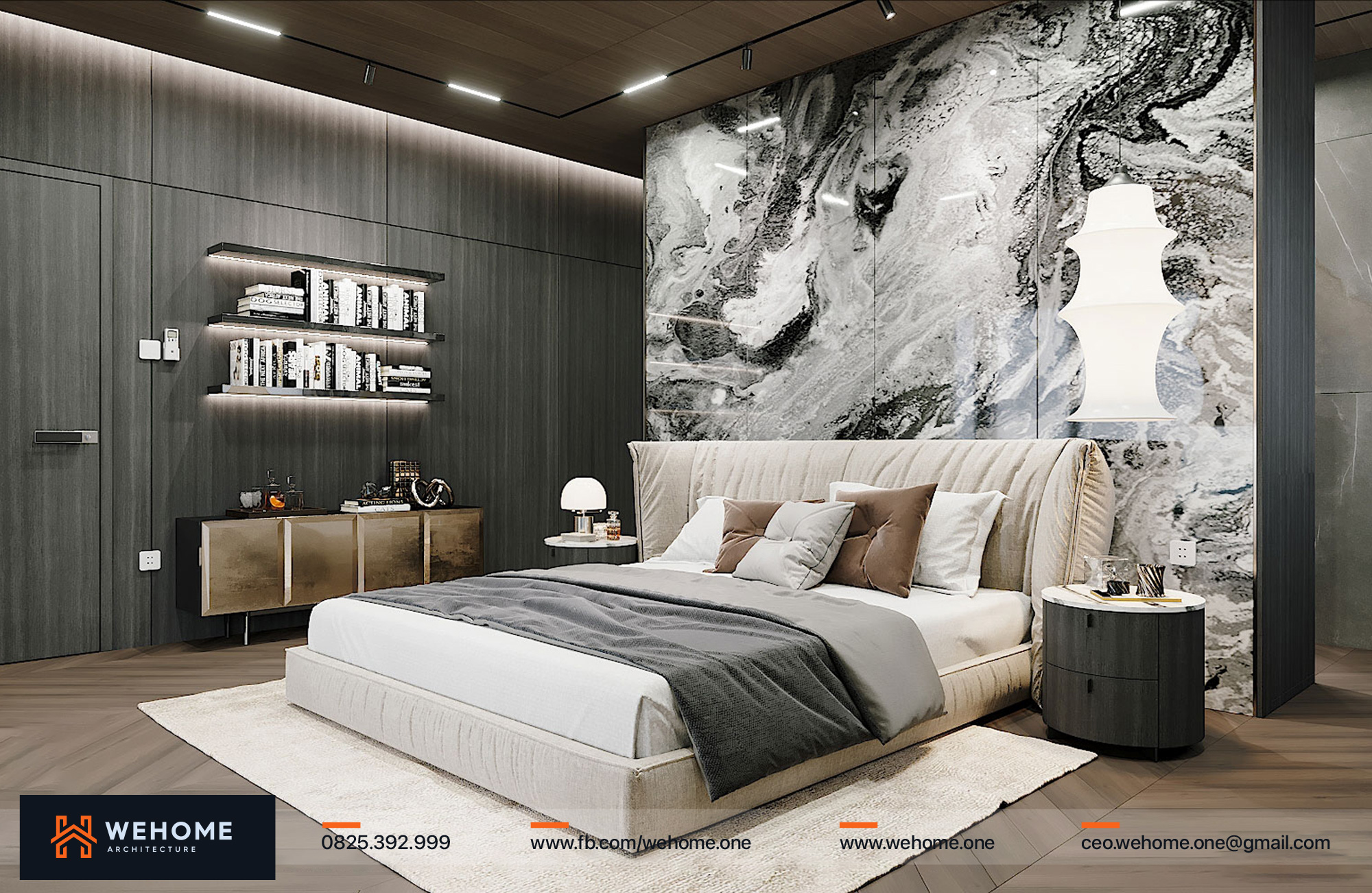 Phòng ngủ master tầng 2 với kích thước rất rộng rãi, đầy đủ công năng và tiện nghi không khác gì căn phòng trong những khách sạn 5 sao.